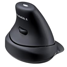 マウスの左右、前後といった概念がないので、今までのエルゴマウスと違い、左手でもそのまま使えます。ご覧のとおり操縦桿を握っているような感じになります。ちなみにてっぺんにあるボタンはDPIの切り替えボタンです。