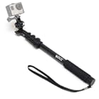 使用したサンワサプライの『200-CAM029』の場合、最長120センチにスティックが伸びるのですが、スマホを先端に取り付けるので少し重くなります。両手で持っているぶんには安定するのですが、片手で持ってスティック手元のボタンを押そうとすると……。ブ、ブレる。