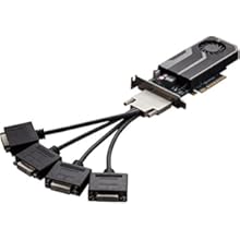 | ↑玄人志向の『GF-QUAD-DISP/4DVI/LP』。実売価格は1万4000円前後。GeForce GT730を備え、DVD-D×4出力という変t……実にユニークなグラボです! |