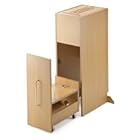 ルーターの収納部はキャスターが付いた引き出し式で、お立ち台式の外付けHDDなどの入れ替えもラクそう。これ、複数のハダカのHDDが自室に転がっている私に最適なのではないでしょうか(フラグ)。下部には上部と同様に、電源タップなどを収納できるスペースが用意されています。