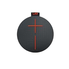 また、独特な本体形状にもさらに磨きがかかっている。UE Rollは、まるで円盤やどら焼き、円形のクッションといったような、スピーカーとしては非常に特異な形状を採用している。これはスピーカー音声の指向性をなくす工夫でもあるが、見た目にかわいさを感じるほどになかなか絶妙なデザインだ。そして、UE BOOMと同様、スピーカー面に用意されたボリューム調節用のオレンジ色の大きな+と-ボタンも見た目のインパクトを高めている。