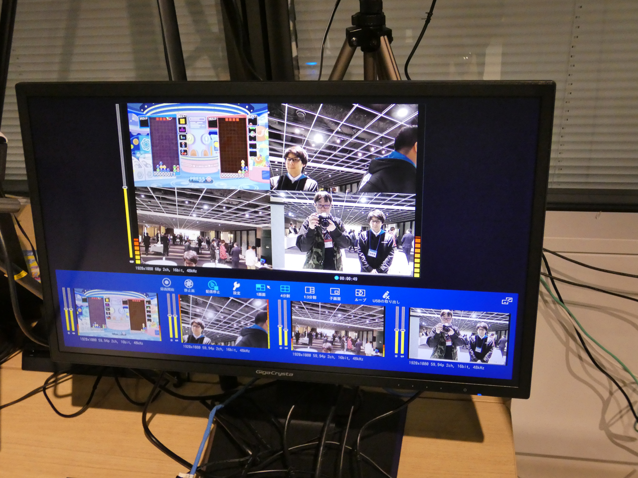 GV-LSBOXは、HDMI出力の映像をPCなしで配信・録画できる。最大4つのHDMI入力に対応し、本体正面のボタンで録画・配信開始だけでなく、スイッチングや画面合成も可能。加えて、最大3ストリームに1080p/60fpsで同時配信でき、最大3映像同時に録画することも可能だ。画面表示は1画面モードのほか、子画面モードや1:3分割モード、4分割モードなどが利用できる。