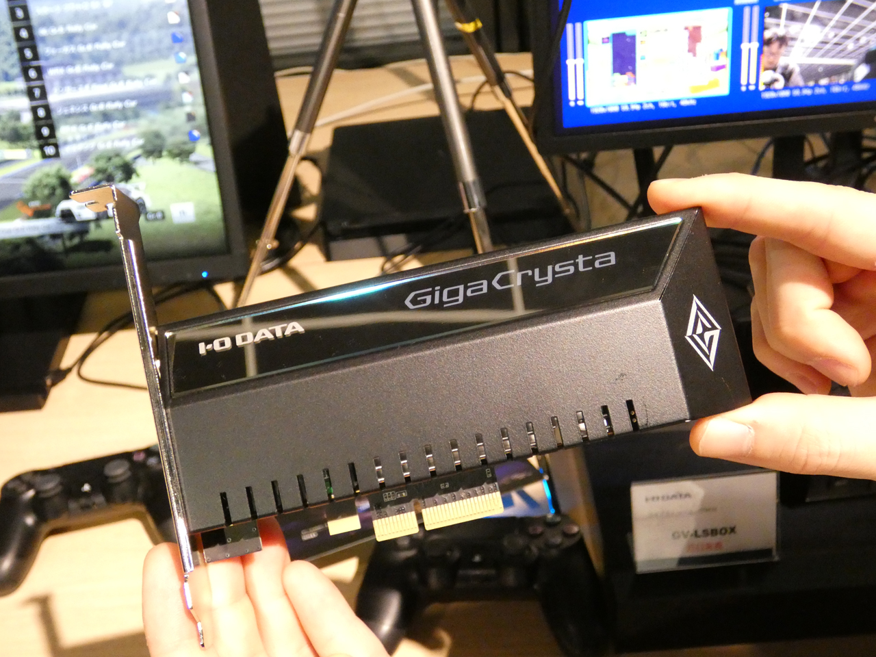 その横には、4K/60pでの録画に対応するソフトウェアエンコード型PCIeキャプチャーボード「GV-4K60/PCIE」も展示してあった。4K/60p HDRパススルー機能を搭載し、接続はPCI Express 2.0(Gen2)を採用。録画ソフト「I-O DATA HD Mix Capture」も付属している。価格は4万1000円(税別)。