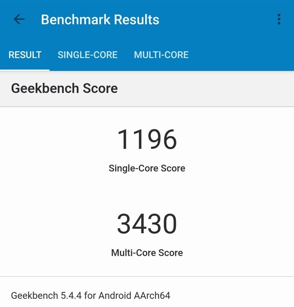 Geekbenchのスコアはシングルコアが「1196」、マルチコアが「3430」とのこと。以前計測した「moto g52j 5G」よりは高評価で、「Xperia 1 IV」にも迫る数値が出た。