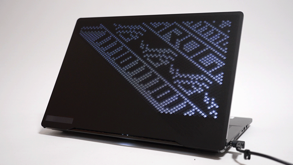 1711個のLEDライトと18710個のCNCホールを組み合わせた「AniMe Matrix」を天面に配置。「ROG Zephyrus G14 GA402」と比べてAniMe Matrixは1.2倍に拡大されている