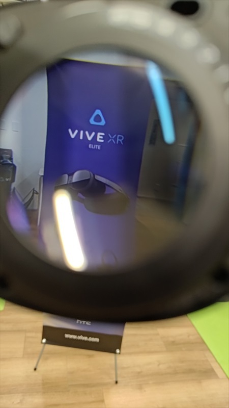 まずはなんといっても驚いたのがパススルー映像だ。従来のVRヘッドセットには低画質なカメラによる、白黒の映像しか映し出せれなかったが、割と鮮明なカラー映像で現実の世界をVIVE XR Eliteを被りながら見ることができる。