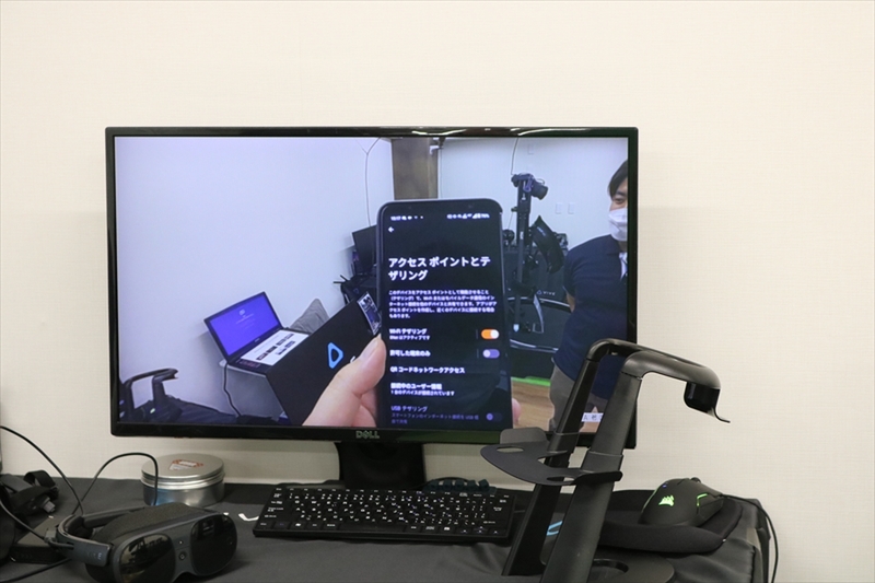 最後に、PCVRの体験を行なった。今回のデモではVIVE XR EliteとPCは、無線で接続されていたが、無線LANが不安定な場合は、別売りのストリーミングケーブルで有線接続もできる。