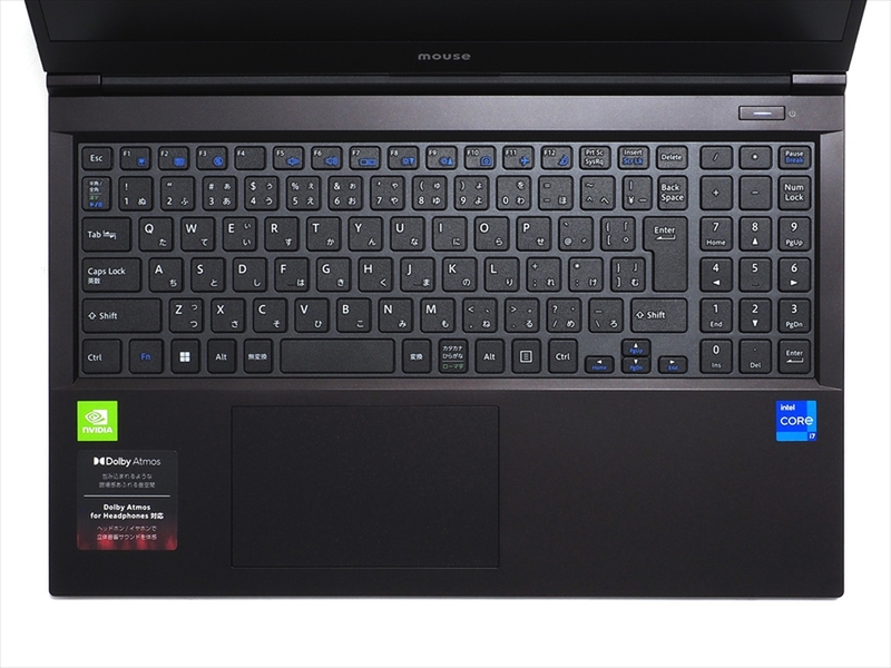 キーボードは10キー付きの日本語配列104キー。キーピッチ19mm、キーストローク1.8mmと、このクラスの筐体では一般的なスペックと言えるだろう。半角/全角やBack Space、最前列のキーを中心に幅を詰めたキーもあるが、文字入力や数値入力のキーについては等ピッチなのがありがたい。