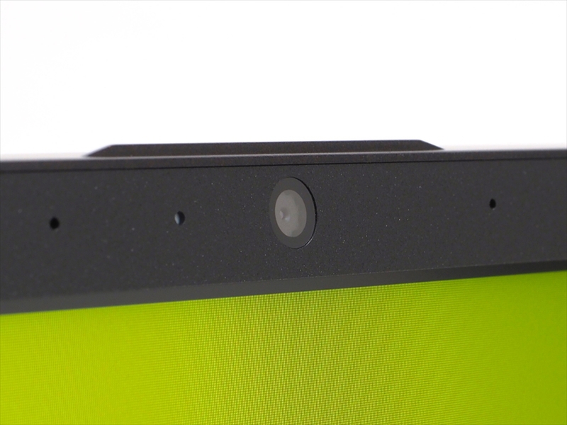 ディスプレイ上部にはHD解像度(100万画素)のWebカメラも搭載している。オンライン会議、オンライン学習ニーズの高まりで最近はフルHD対応のWebカメラを搭載するものも増えてきているが、それらと比べると映像にやや荒さを感じる。