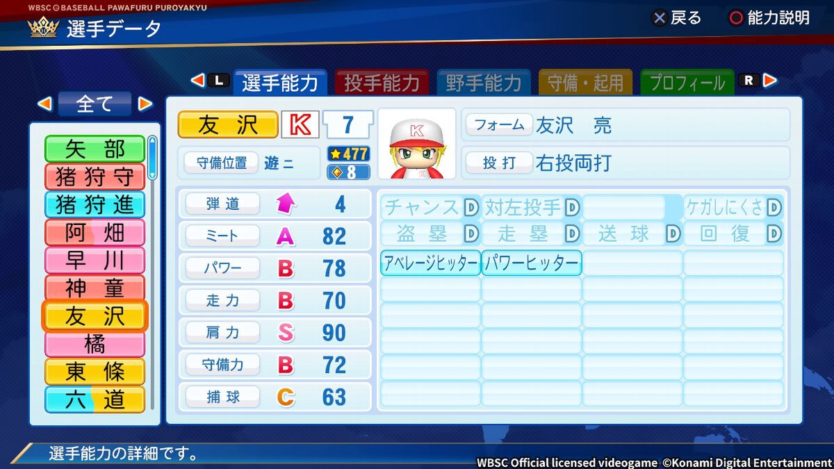 猪狩守・友沢亮など、「パワプロ」シリーズの「サクセス」選手が登場。300人以上のキャラクターの中から、25人の選手を選んで自分だけのチームを作成できる。