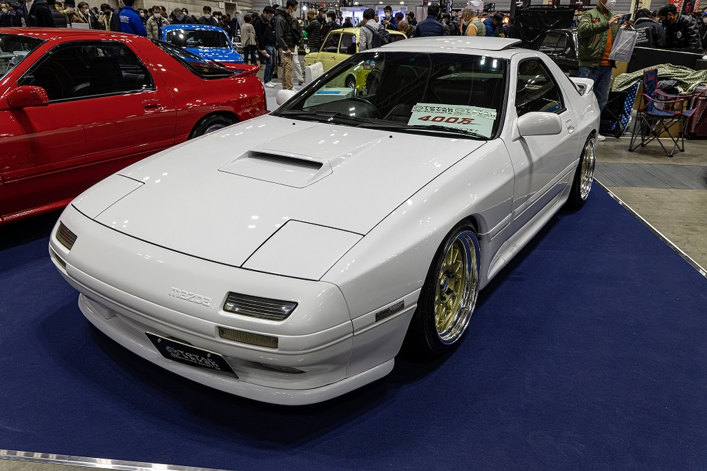 続いて純白のFC3S。「赤城の白い彗星」が頭に浮かぶ1台です。久しぶりに見ると「こんなに小さかったのか」と改めて思いました。こちらお値段400万円とのこと。