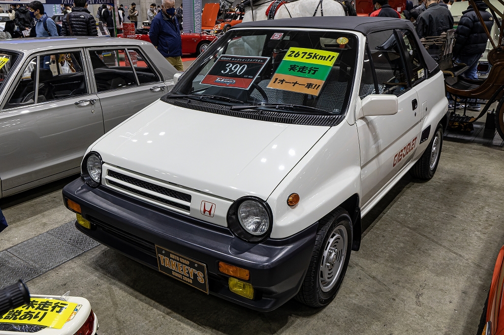 Hondaのシティ・カブリオレ。なんと走行距離3000km弱という1台で、390万円というプライスがついていました。「新型シビックが買えるじゃないか」と思うかどうかは人次第。これはコレで欲しいと思うものです。そしてモトコンポも。
