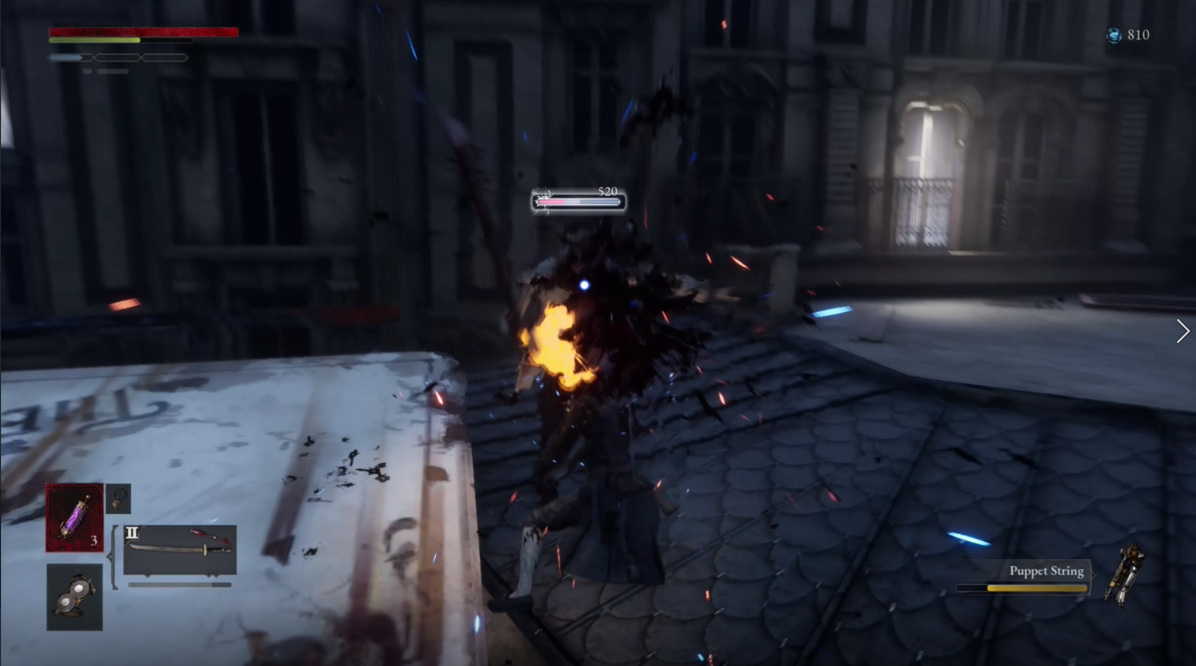 『Lies of P』は、19世紀末のベルエポックが時代背景として採用されている。ダークな洋風の建造物が立ち並び、敵も昔の警官のような風貌が多い。加えて、素早い動作で襲ってくる犬や、銃や爆弾を使って遠距離から攻撃してくる敵もいる。