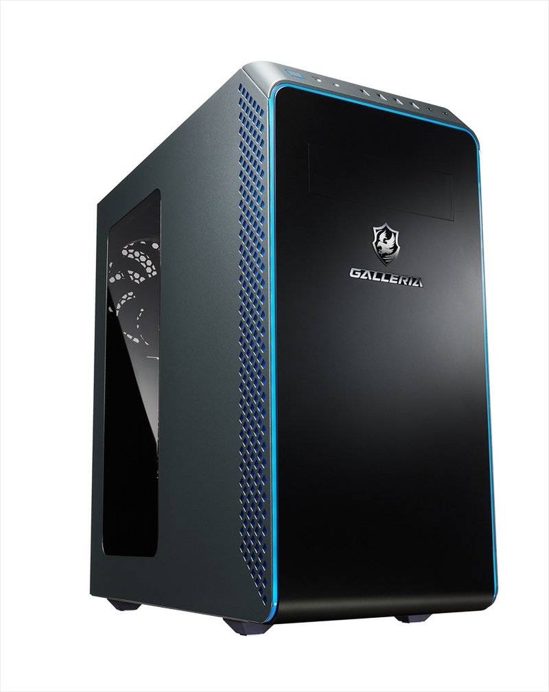 PCケースはフロントの周囲がLEDライティングで光るGALLERIAブランドのモデルを採用。ガンメタリックな質実剛健なデザインは重厚感があり、ゲーミングPCらしい趣を持っている。