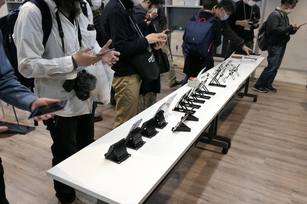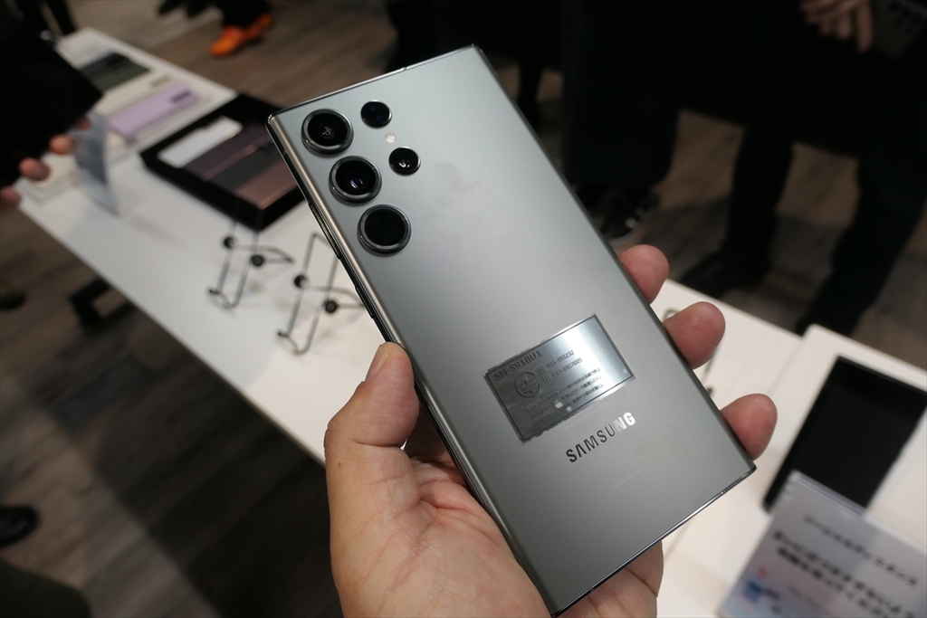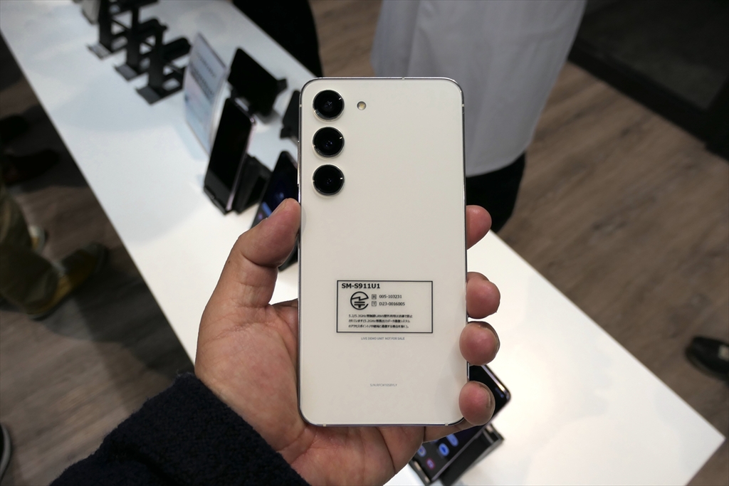 イベント終了後は、タッチ&トライを実施。会場に用意された実機を手に取って、自由に使ってみることができました。展示されていたのはグローバル版ですが、Galaxy S23とGalaxy S23 Ultraについては、サムスンが技適を取得し、背面に技適シールが貼られていました。
