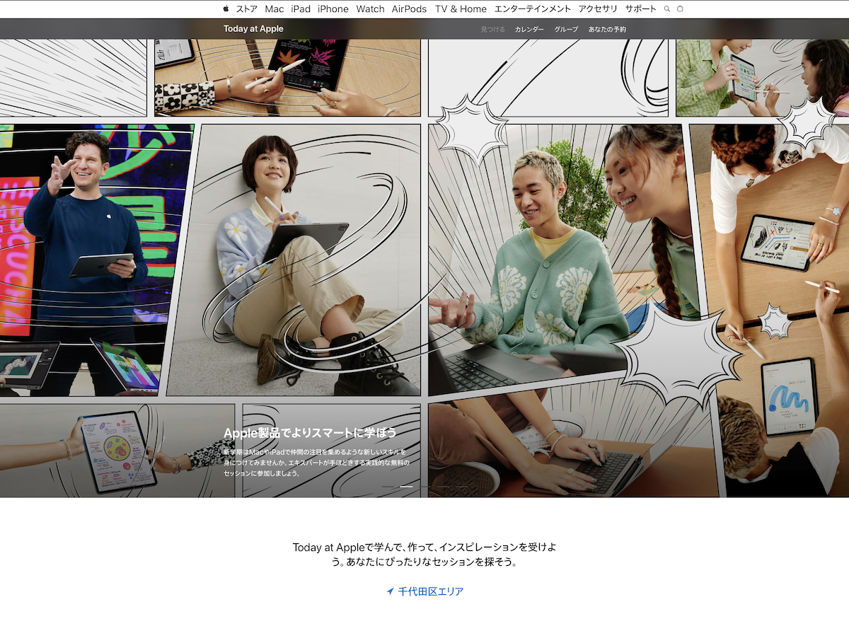 Today at Appleはアップル直営店のほか、オンラインで開催される回もあります。複数人のグループでの予約もできるようになっているので、気になる製品や機能がある人は、家族や知人とともにチェックしてみるとおもしろい体験ができるかもしれません。