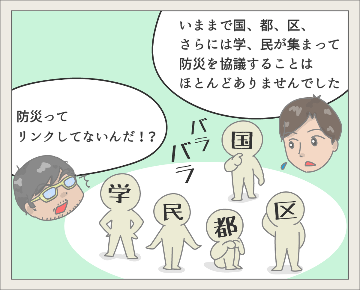── 昨年3月は浸水の話でしたね。新しい避難場所を設計しなおす話に興味を持ったんですが、今回はそこから首都直下地震にテーマが変わったんですか?