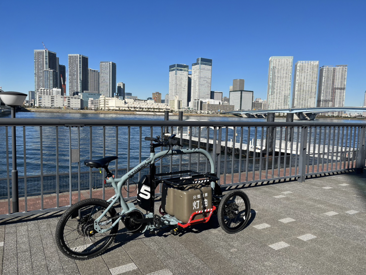 大村 そうです。阪神淡路大地震のときに、ママチャリが移動手段や水を運ぶために10万円相当で売られていたことに衝撃を受けた、エンビジョンのデザイナーさんが開発されたものですが、これが60リットルまでお水を運べる自転車なんです。平時は子どもを載せたり、バーベキューセットを運べたりもします。そしてデザイン的にも格好よく、豊洲のライフスタイルにも合うのではないかと思い提案しました。