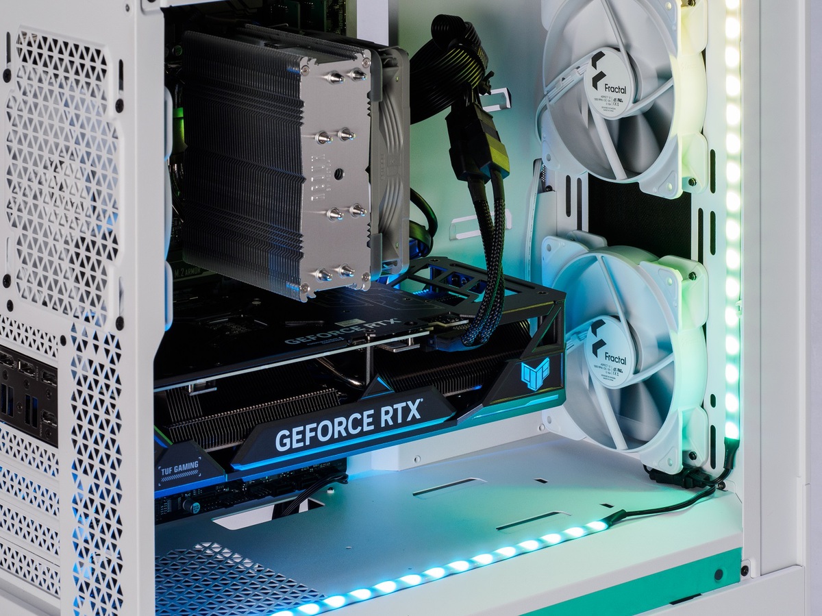 サイドパネルが強化ガラスなら、せっかくなのでPCの内部をライトアップしたい。そんな時はケースオプションの「ARGB発光システム(LEDストリップ2本)」を追加しよう。PCケースカラーが標準のホワイトだと、内部全体がキレイに光るのでオススメだ。LEDの色は自由に変えられるので、好みの色に変更してみよう。