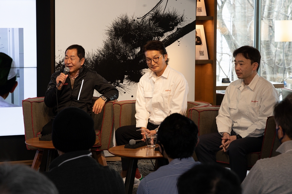 思い出に残る開発はSTEPWGNだとか。最初の開発車両に乗った土屋さんは「こんなクルマじゃ、後席でポップコーンが飛び散って大変だよ」と福田さんにお話されたのだとか。福田さんは「土屋さんは速く走るだけじゃなく、実際にクルマを使われる方のことも考えていらっしゃる。それがスゴいんですよ」と語るものの「でも走って楽しいクルマじゃないとHondaのクルマじゃないですからね」と、ちょっとだけ抵抗をされるなど、お互いの関係を感じる楽しいひと時でした。