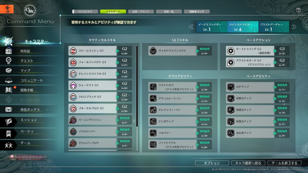 ネットワークテスト時だけの設定かもしれないが、レベルアップするたびに新スキルが増えていくのはモチベーションが高まってとてもよかった。ツインストライカーの場合、スキルを当てるとHPを回復するものもあったので、ソロで戦うのに適したクラスと言えるだろう。