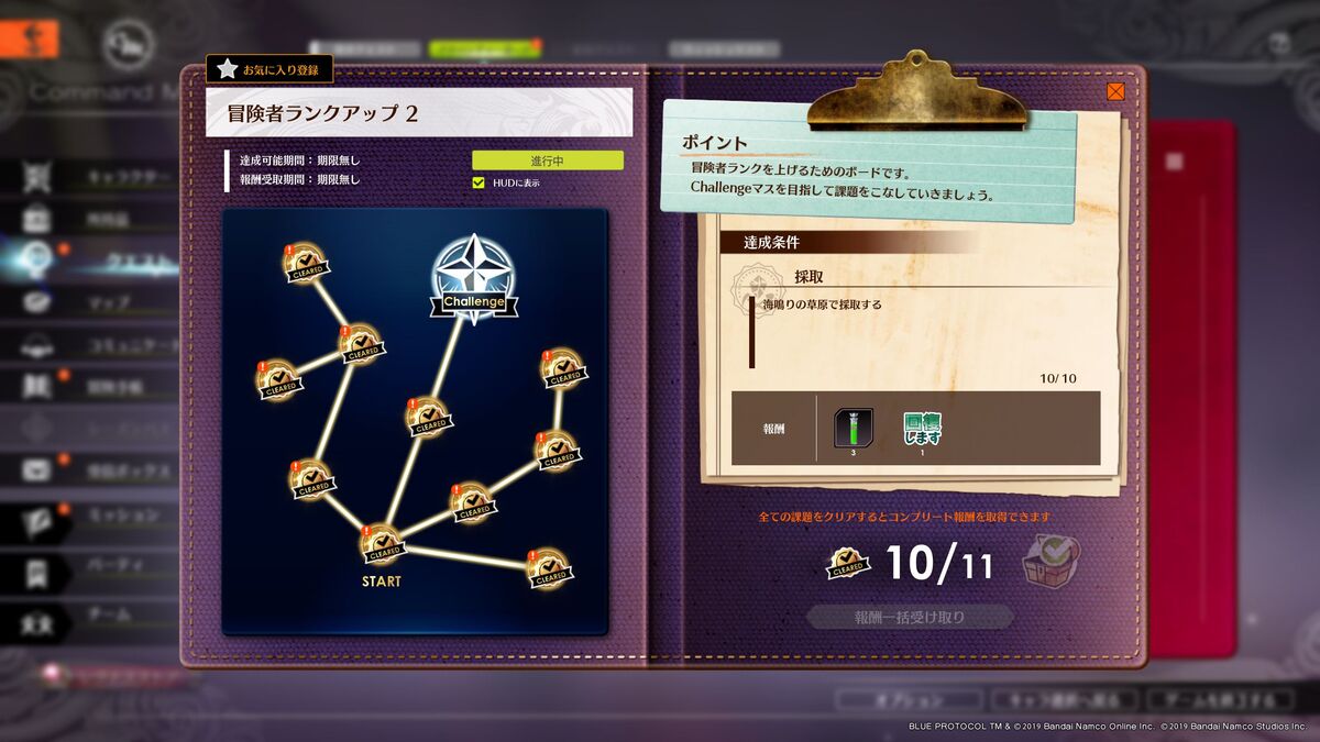 また、冒険者ランクを上げるためのミッションが記載された「アドベンチャーボード」という要素も存在。最初のほうは簡単なチュートリアル(スタンプを使ってみるなど)が多いが、経験値やお金がもらえるのでやっておくべし。