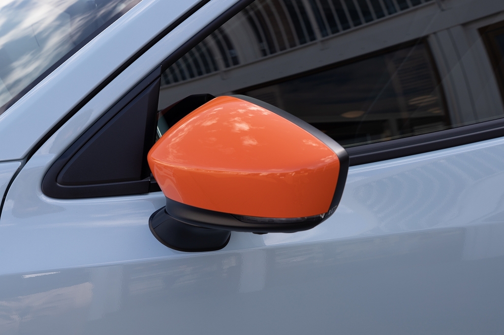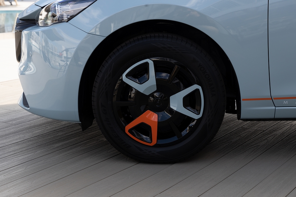 面白いのは、ルーフ部分。2トーンを塗装ではなくフィルムで再現しているのだとか。「2トーン塗装をする場合、2回塗装レーンを通さねばならず、結果として製造時間とCO2排出などの環境負荷がかかります。ステッカーにすることで、製造コストの削減とエコが達成できるほか、バリエーションを増やすことも容易です」というわけで、なんと11種類のルーフフィルムを用意。外装色にホイールキャップ、内装の組合せで198通りのコーデを実現したというわけです。