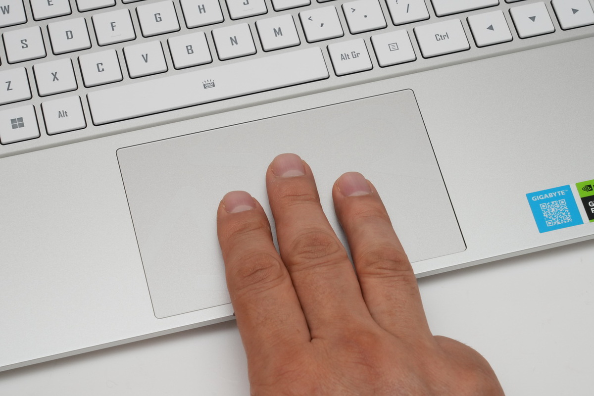 キーピッチは14型ノートPCとしてはやや狭めな実測18.5mm、キーストロークは実測1.7mm。キーボード面の剛性は高く、打鍵感は良好だ。タッチパッドのクリック感も小気味よく操作しやすい。