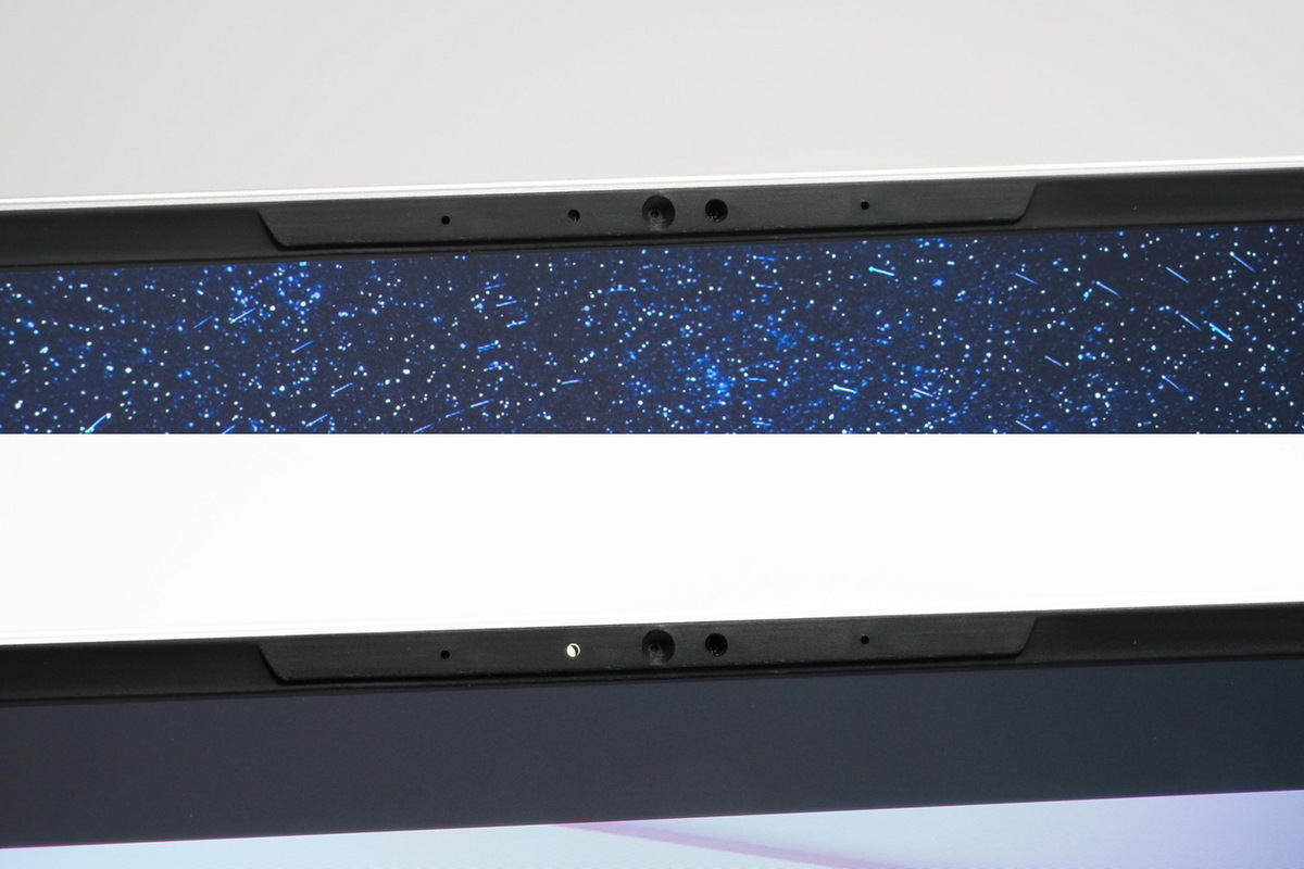 CPU以外のスペックは共通。ディスプレーは14型QHD+有機ELで2880×1800ドット、16:10、DCI-P3カバー率100%、リフレッシュレート90Hz、VESA DisplayHDR 600 TrueBlack認証、TÜV Rheinland認証、Eyesafe 2.0認証を搭載。ディスプレー上部にはフルHDウェブカメラ(1080p、顔認証対応)とデュアルマイクを内蔵している。