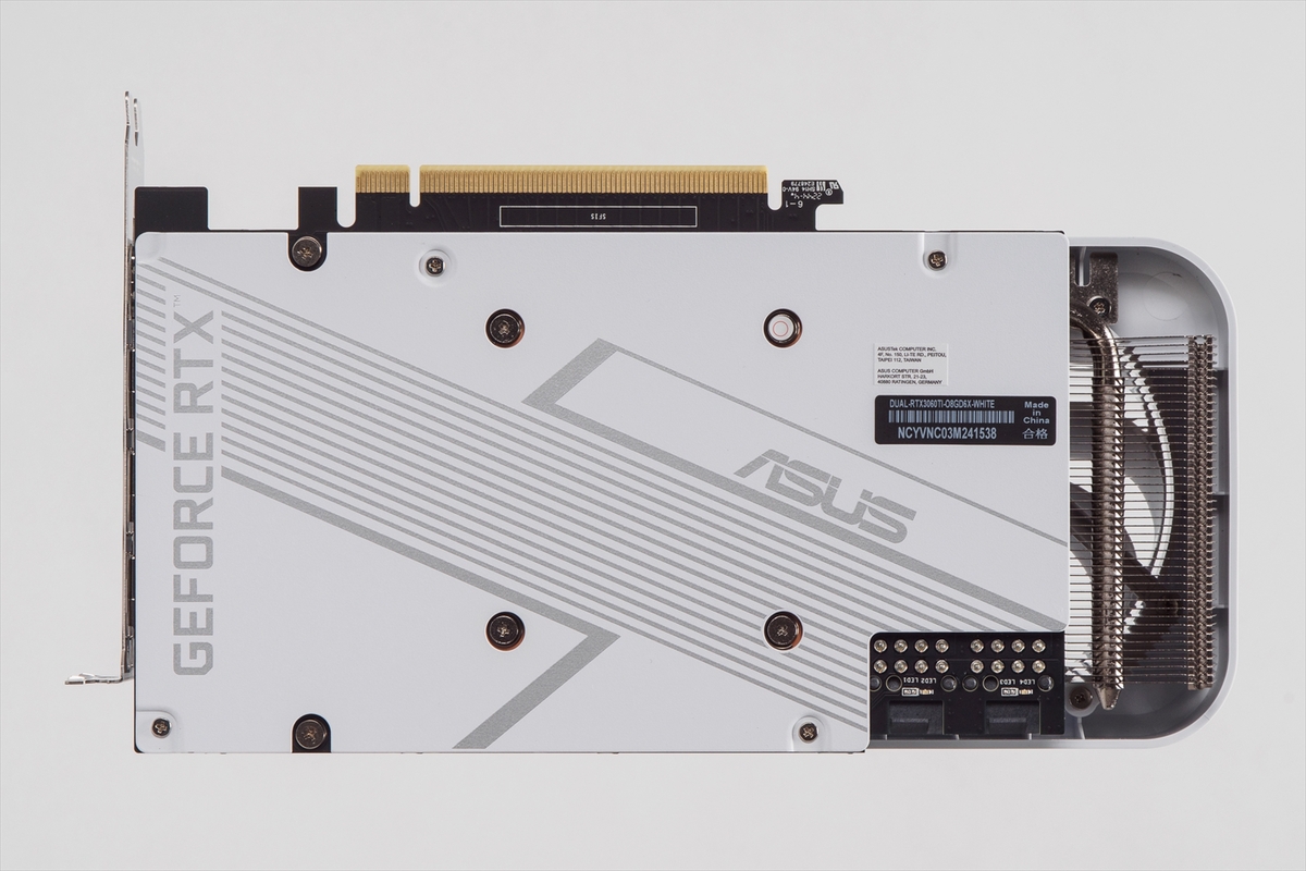 また、ビデオカードの表だけでなく、バックプレートもしっかりとホワイトカラーに染色されているという点も、白いPCを組む上ではありがたい。