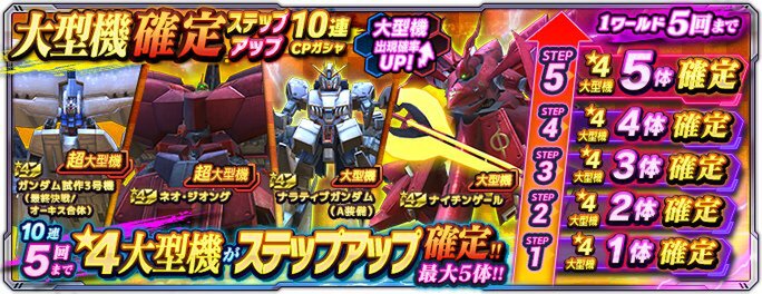 「大型機確定 ステップアップ10連CPガシャ」配信!