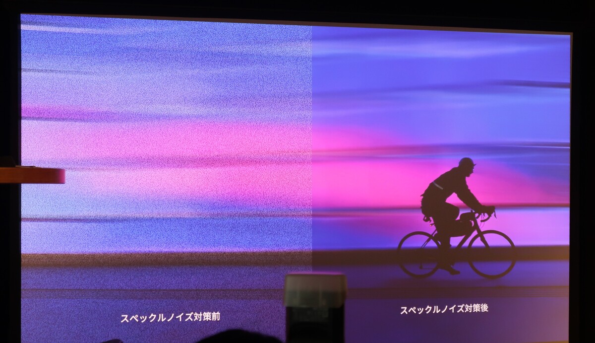 これにより、自然界における物体色の99.9%を再現し、BT.2020のほとんどをカバーしている。ここまで色再現を実現しているのは、この3色レーザー光源だけだという。