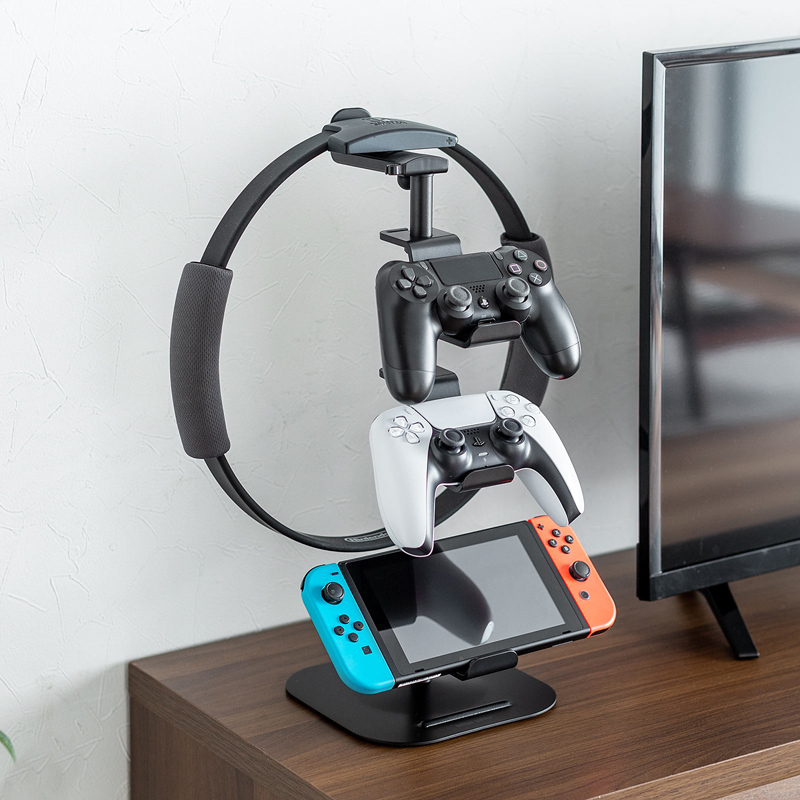 サンワダイレクト、ゲームパッドスタンドにヘッドホン保管場所を追加できるフックを発売