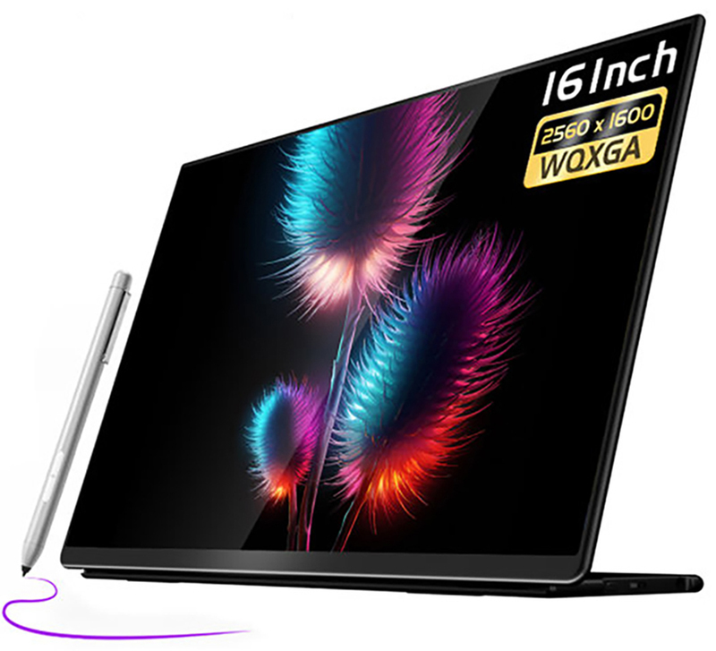 16型WQXGA解像度、アスペクト比16:10画面と178度の広視野角、色域DCI-P3 100%を備える10点マルチタッチパネルを採用。最薄部4mm/重さ900gとコンパクトで、Alt mode(Thunderbird 3規格)に対応したデバイスであればUSB Type-Cケーブル1本で給電・映像出力・タッチパネル入力が可能(デバイスによって電源供給が別途必要となる)。