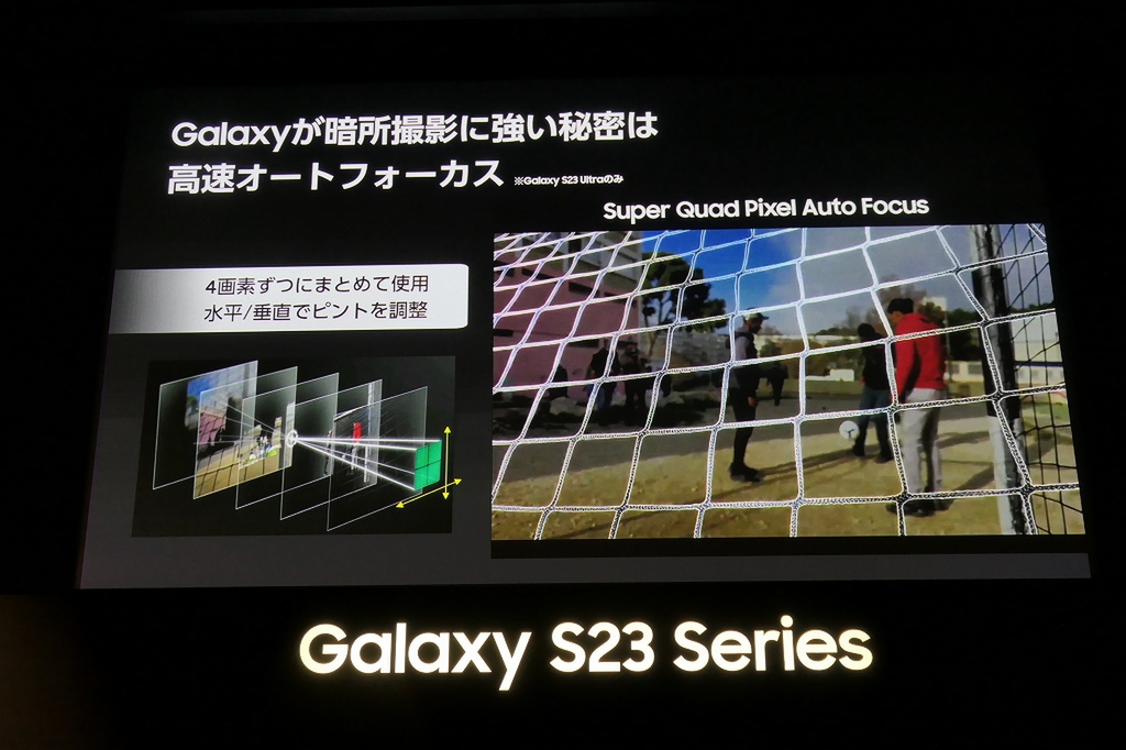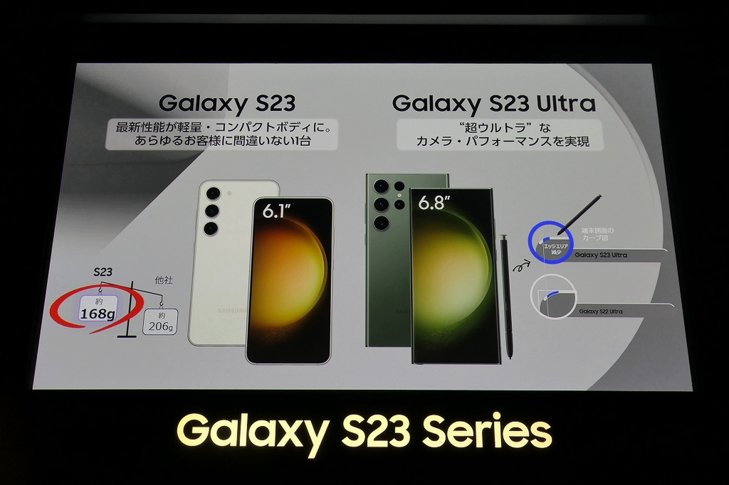 続いて、同社のプロダクト担当 国分夏希氏が新製品のプレゼンテーションを行なった。Galaxy S23シリーズはグローバルでは「Galaxy S23」「Galaxy S23+」「Galaxy S23 Ultra」の3モデル展開だが、日本ではGalaxy S23とGalaxy S23 Ultraの2モデルが発売される。