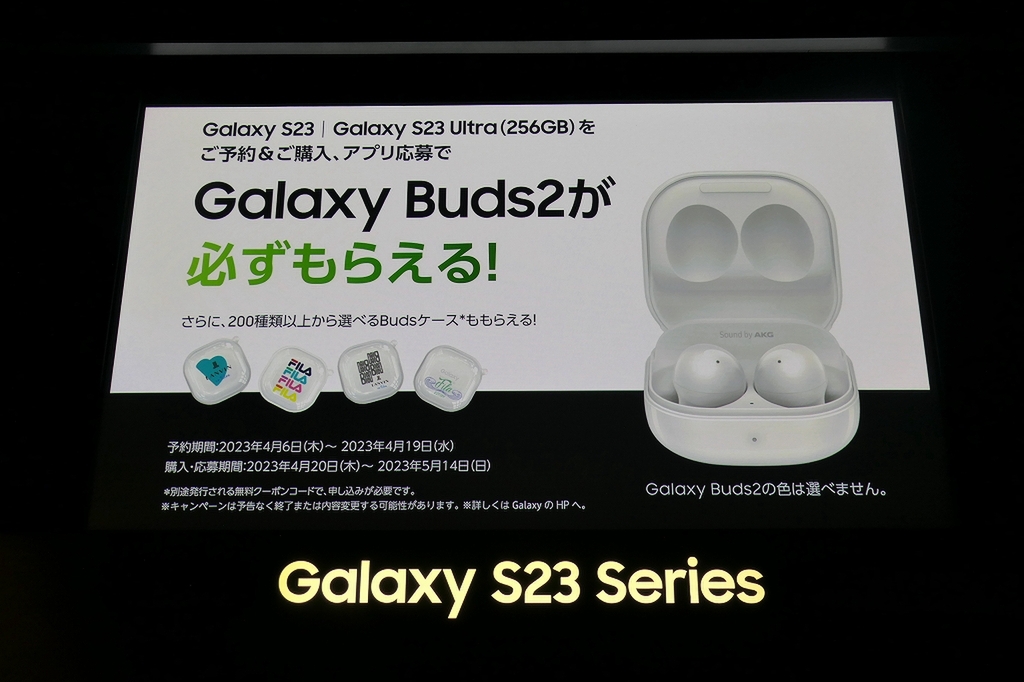 予約して購入した人向けの特典も発表された。Galaxy S23とGalaxy S23 Ultra(256GBモデル)の購入者には、ワイヤレスイヤホン「Galaxy Buds2」と好きなデザインを選べるケースがプレゼントされる。Galaxy S23 Ultra(512GBモデル/1TBモデル)の購入者には、それぞれ256GBモデル/512GBモデルとの差額相当がAmazonギフト券で還元される。