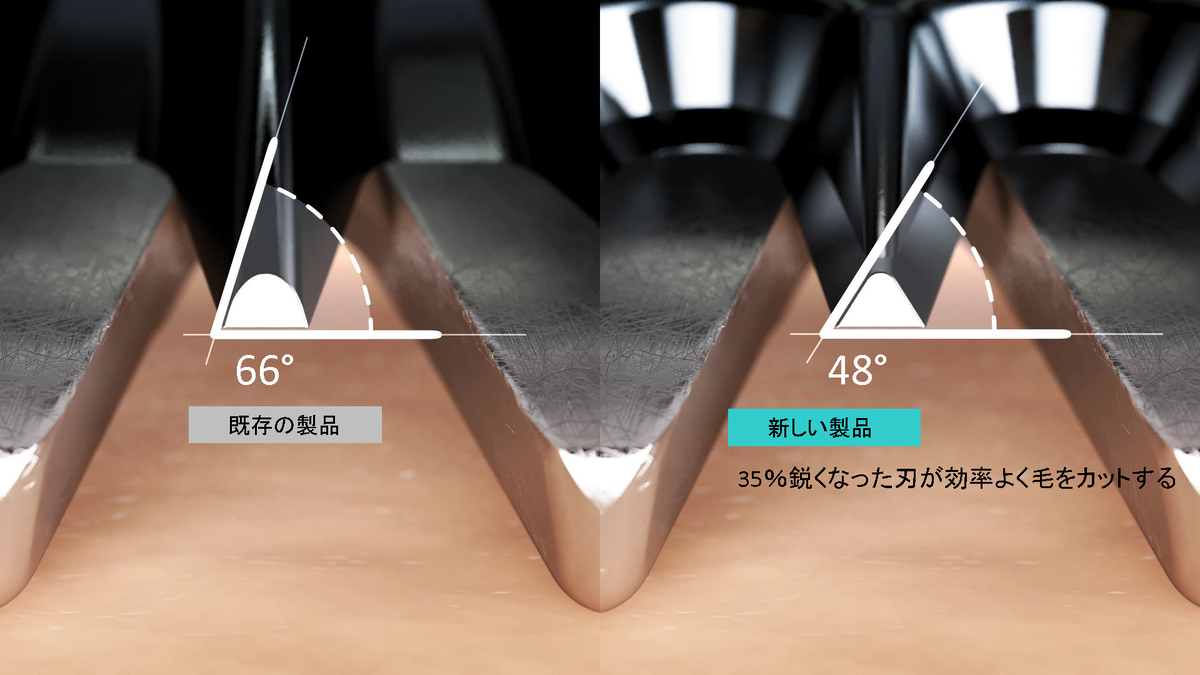 新製品は刃を刷新。ムダ毛をカットするエリアが2倍に増えたことで、より効率的にムダ毛を剃れるようになりました。
