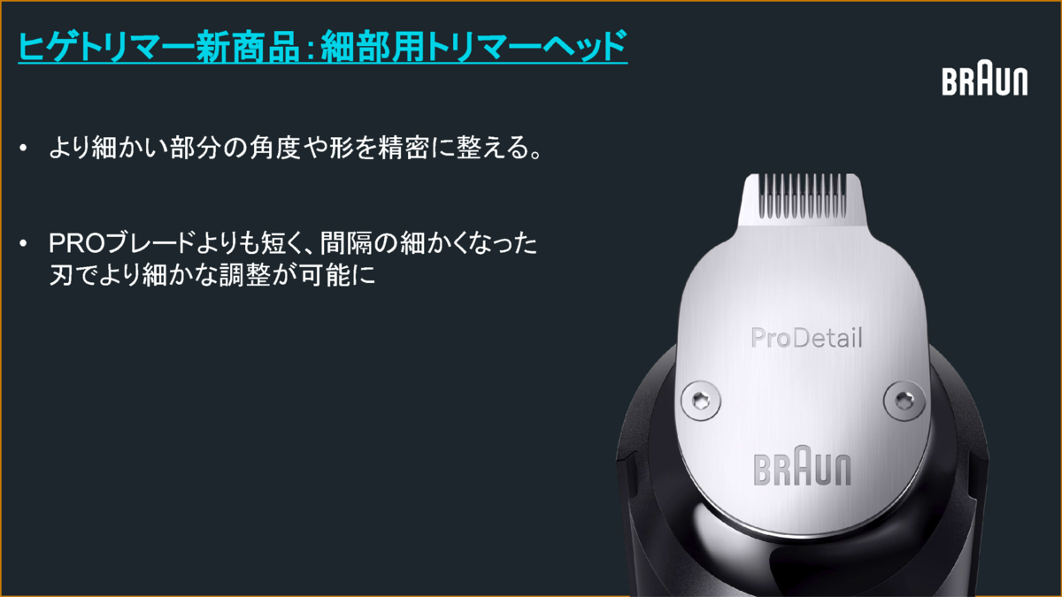新製品の中で気になったのはやっぱりヒゲトリマー。ほぼ惰性でヒゲやムダ毛の処理をしていた私ですが、髪のようにセットすると考えるとグッと楽しくなりますね。せっかく最上位機種が出てきたことだし、今月からいっちょやってみましょうか。