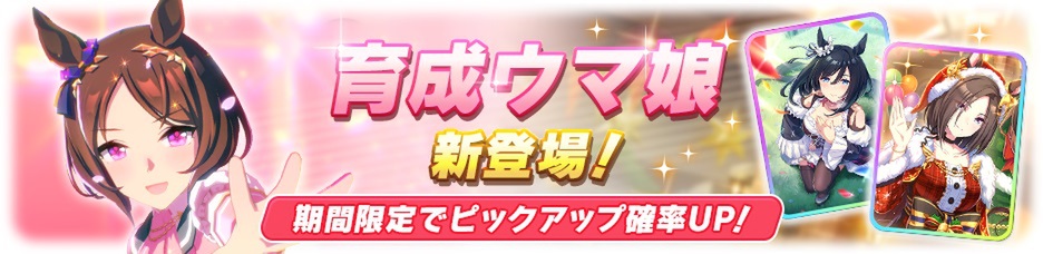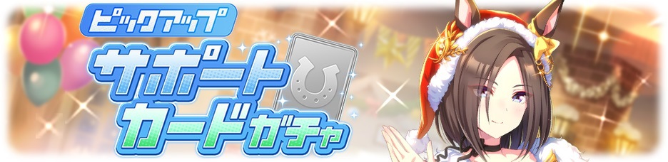 サポートカードガチャでは、賢さとスピードタイプのキャラクターのサポートカードがピックアップ。SSR「[Are you merry?]エアグルーヴ」と「[Danke schön]エイシンフラッシュ」が再登場している。詳細は、下記の公式サイトのお知らせを参照してほしい。
