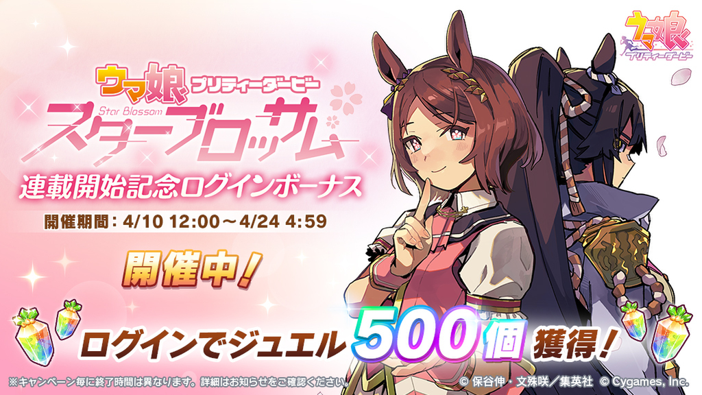 また、連載開始を記念して、ゲームではジュエル500個が獲得できるログインボーナスを開催中だ。詳細はゲーム内のお知らせを参照してほしい。