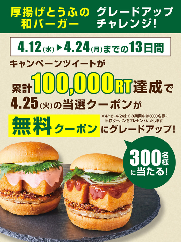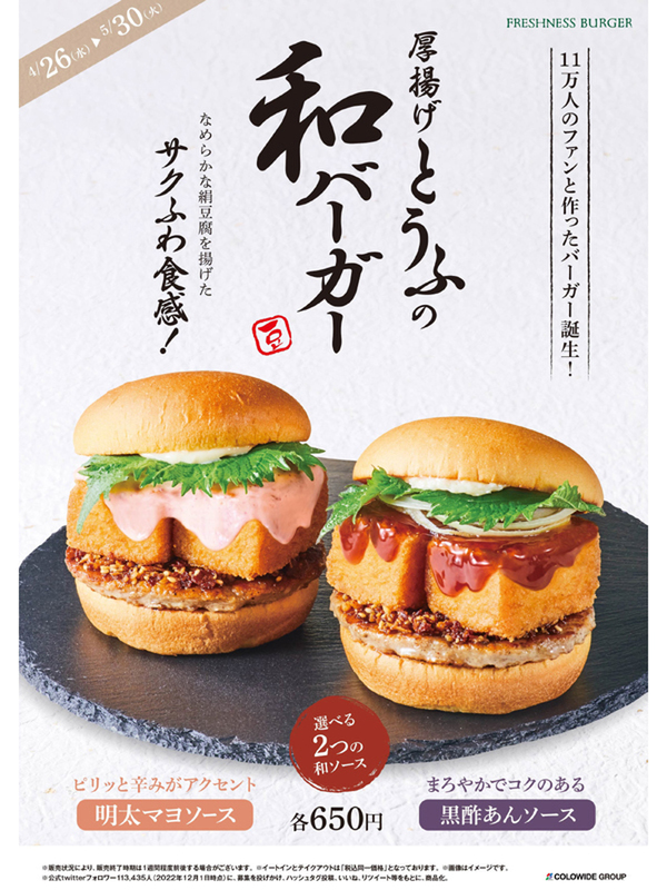 フレッシュネス、Twitter上にてファンの意見を取り入れ商品化! 「厚揚げとうふの和バーガー」