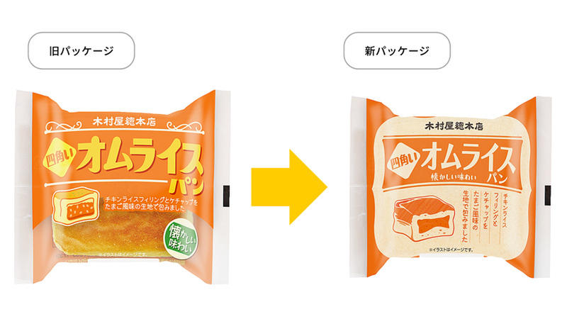 木村屋、レトロなパッケージの「四角いオムライスパン」「昭和なピザパン」