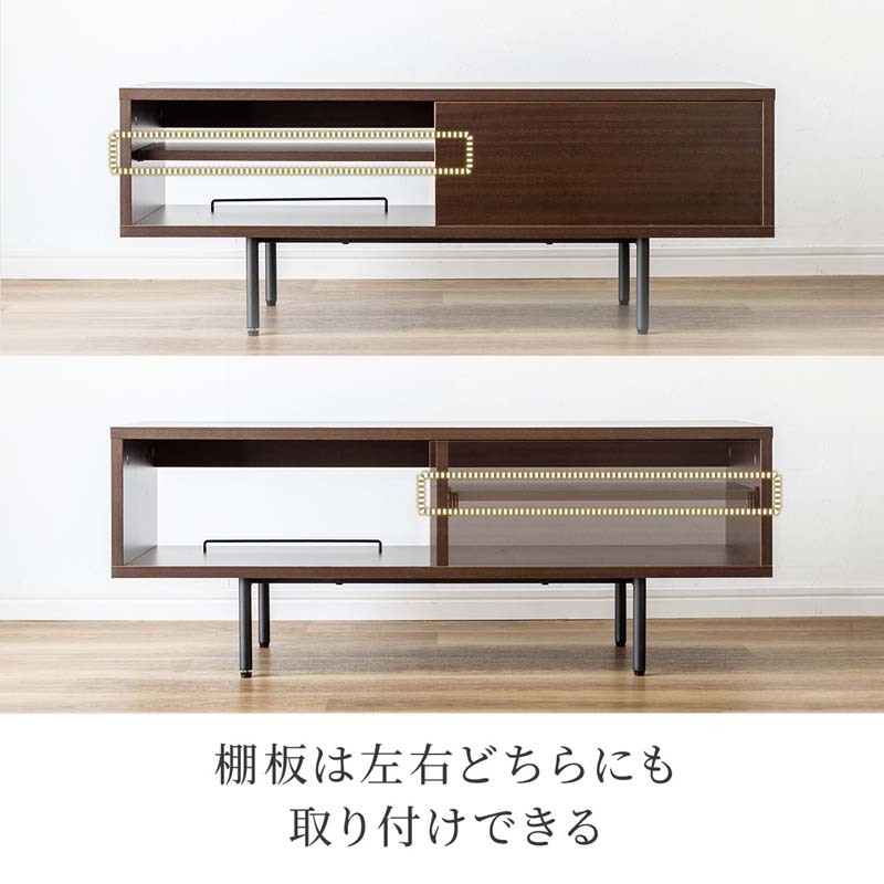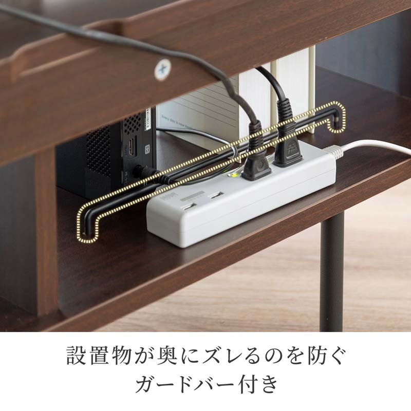 丸みのあるフレームデザインを採用したローボード。スタイリッシュ且つシンプルな構造となっており、収納部分にはオープン収納部分と扉付き収納部分を用意(オープン収納部分/扉付き収納部、棚板は左右に付け替えることが可能)。レコーダーやゲーム機などを収納できるほか、後部はガードバー付きで機器の落下を防ぐことができる。