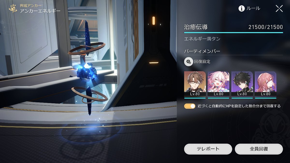 フィールドの特定のポイントに設置されている界域アンカー。これに近づくと、味方の回復が可能。また、敵に負けた場合の復帰ポイントともなる。
