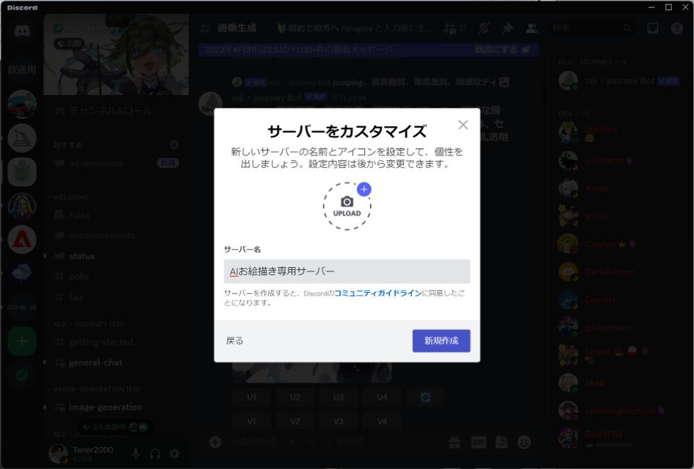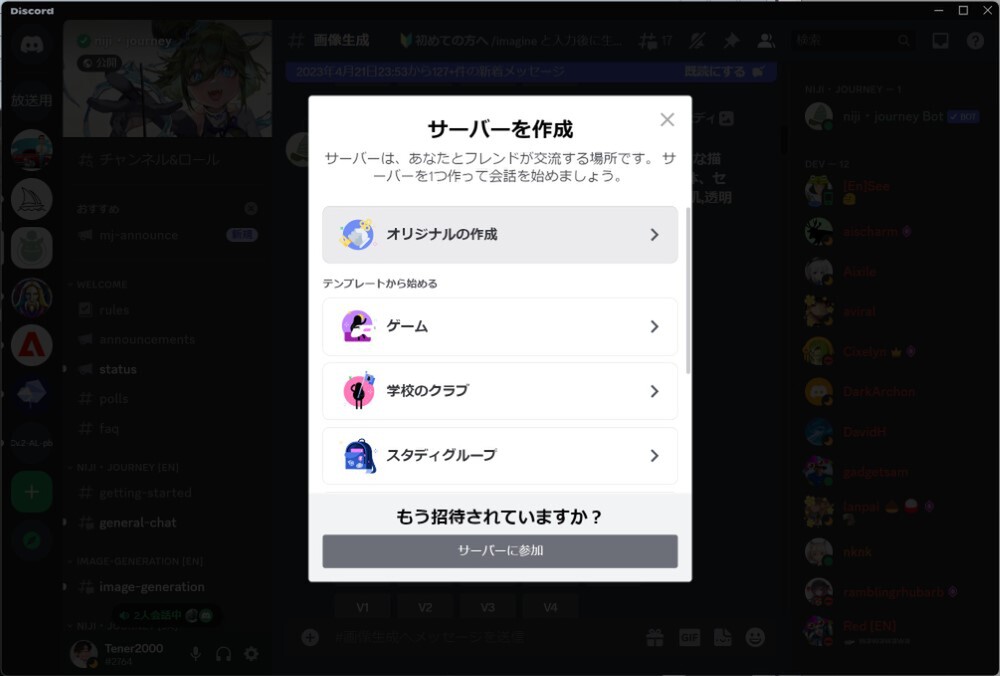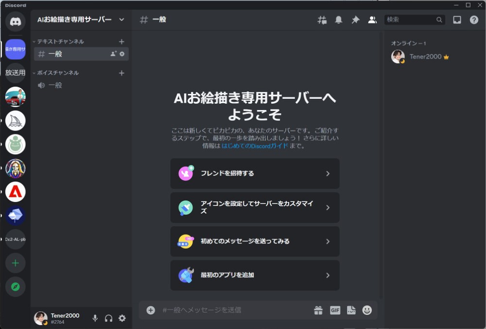 というわけで、次はDiscord上に、自分だけのお絵描きサーバーを用意してみましょう。