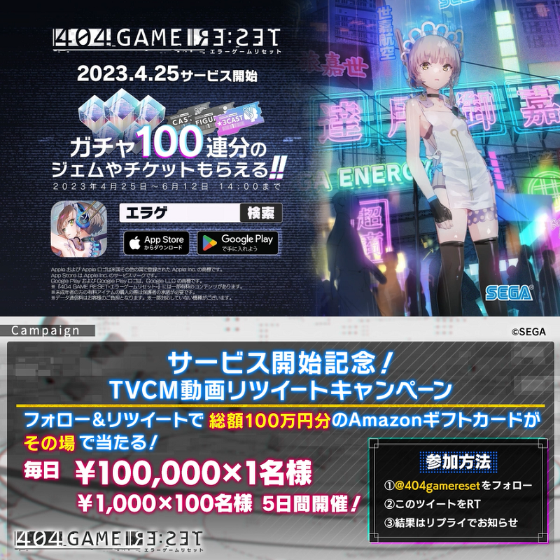『エラーゲームリセット』の配信開始を記念して、2023年4月30日14時59分までの期間限定でキャンペーンを実施中。