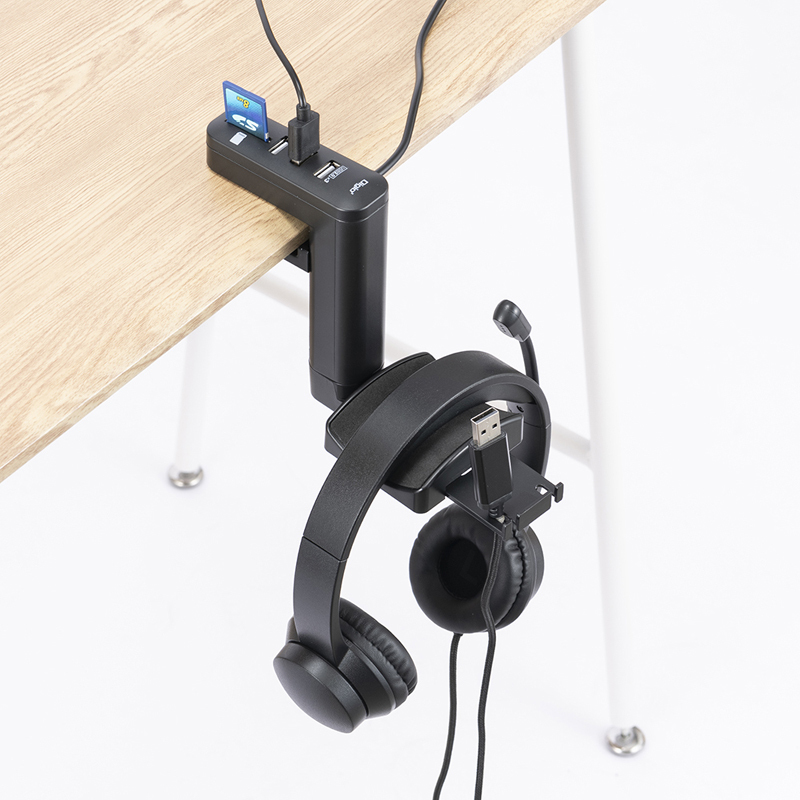 ナカバヤシ、USBハブとSD/microSDカードリーダー・ライターを備えるヘッドホンフックを発表