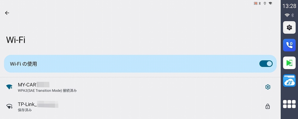 あとは、Wi-Fiで車内のWi-Fiスポットへ接続するように設定する。何かしらのネット接続の手段がないと利用できない。