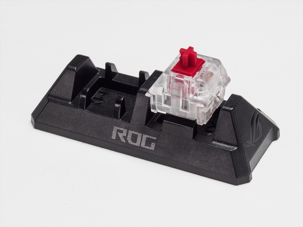 ちなみに、ROG Azothに搭載されているキースイッチはROG NXというオリジナルスイッチで、クリック感のない赤軸が採用されている。広く普及しているCherry MXの赤軸に近いタイプで、軽い押下でもリニアに押し込むことができる静音タイプだ。