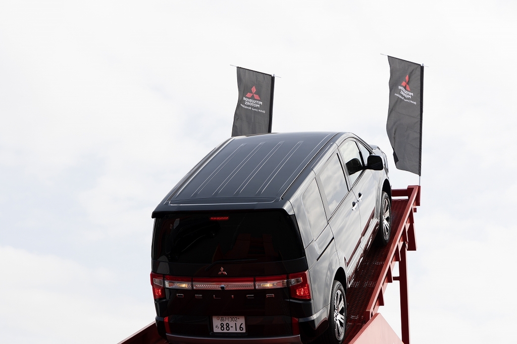 見て楽しむだけでないのがモーターファンフェスタ。三菱自動車ではデリカD:5で45度の坂を上るというイベントが行なわれていました。さっそく部員Kは三菱自動車の担当者に「部長を乗せてもらえませんか?」と交渉開始。部長も「あんなところまでクルマが本当に登るんですか?」と興味津々疑心暗鬼。百聞は一見に如かず、やってもらいましょう。